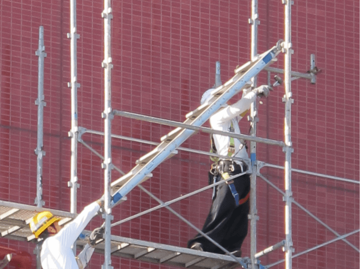 当社は安全管理を最優先に、足場の組立・解体、掘削・盛土、基礎工事などを幅広く手掛けています。
